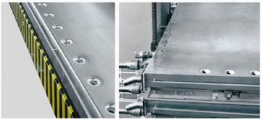 設(shè)備的安全系統(tǒng)有效保證了操作人員和機(jī)器的安全。該機(jī)符合我們主導(dǎo)制定的《皮革機(jī)械 板面移動(dòng)式機(jī)械 安全要求》標(biāo)準(zhǔn),該標(biāo)準(zhǔn)參照并高于歐洲標(biāo)準(zhǔn)EN 1035:1998