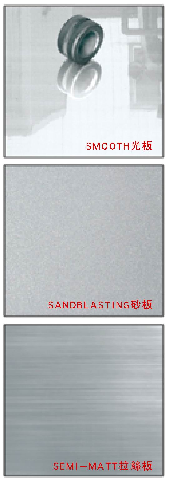 工作板面有光板、砂板,拉絲板三種